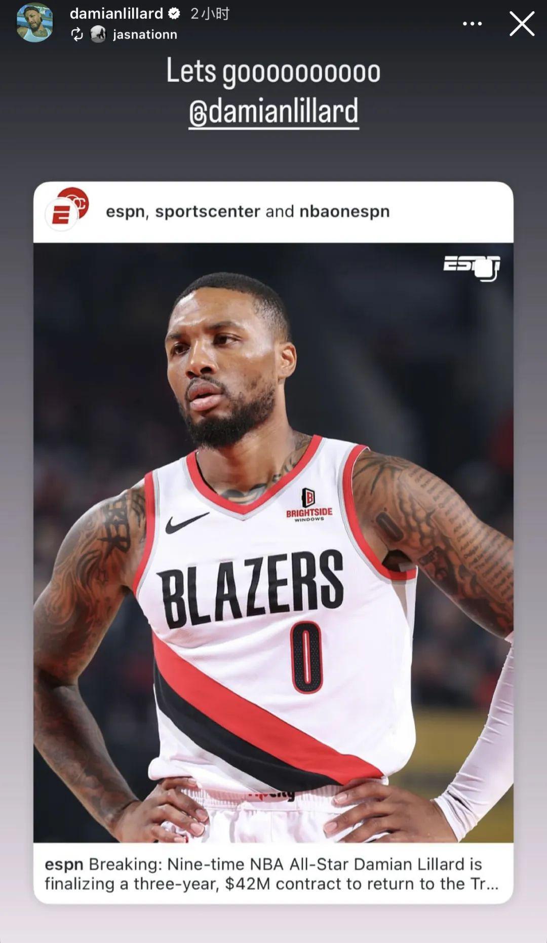 重返最熟悉的波特兰,利拉德显然也无比兴奋,在社交媒体上连续刷屏,欢庆自己回归开拓者。