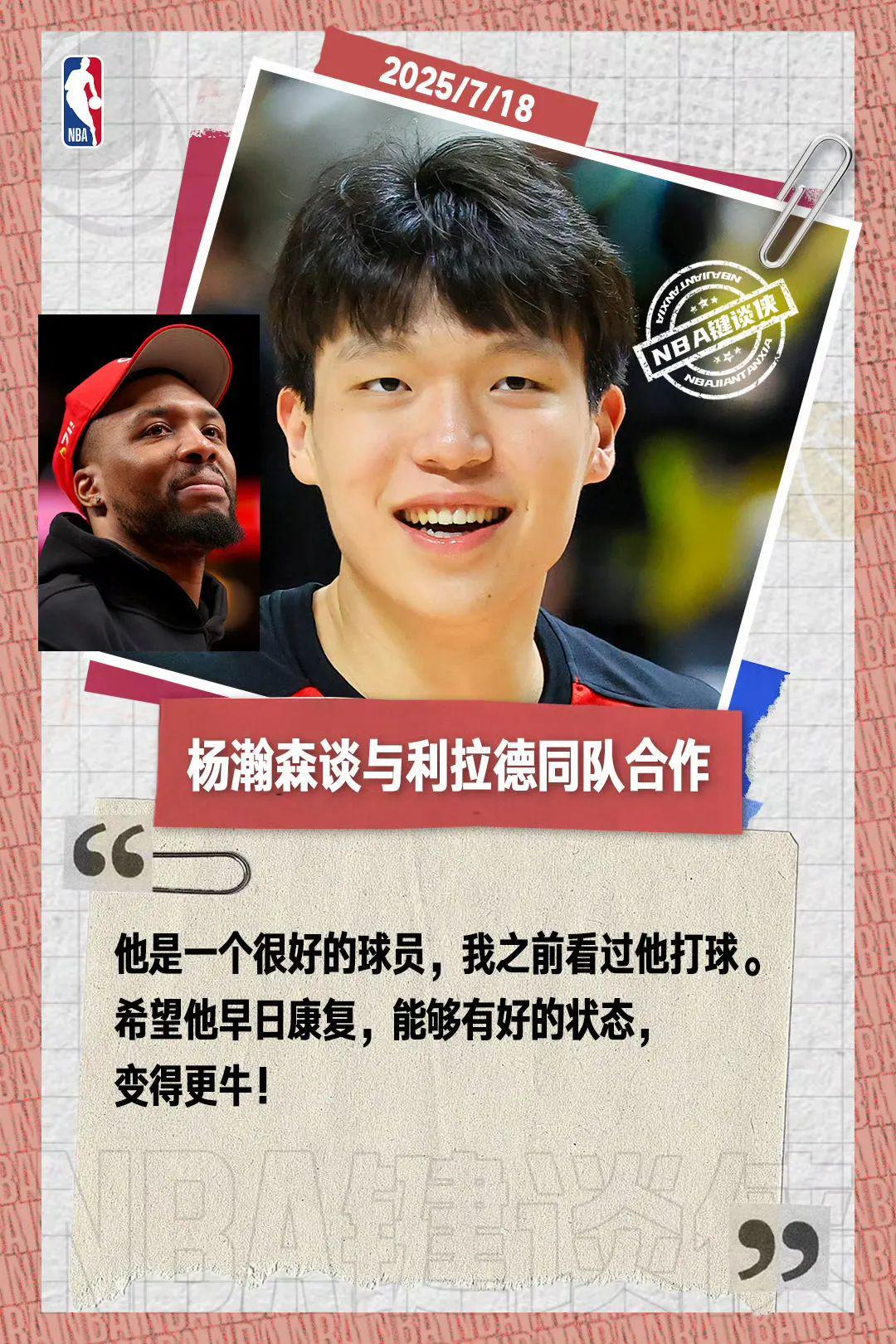 杨瀚森在今天夏季联赛的赛后采访中已经直接作出看表的动作了,看来他对于和利拉德的合作也是期待万分。