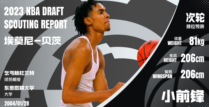 选秀预测一路暴跌,从最初的状元热门,到乐透区,再到首轮末,最后令人意想不到的是,2023年选秀大会中,伊莫尼·贝茨掉到次轮49号才被骑士选中。